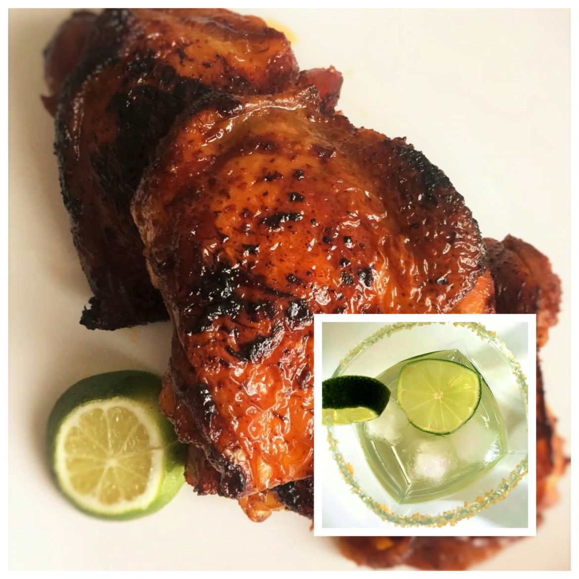 Combineer de kip met een tropische cocktail, ik heb gekozen voor Martini, partjes limoen, op het glas een randje rietsuiker en natuurlijk ijsblokjes. Deze fris zoete cocktail smaakt perfect bij de Caribische kip.