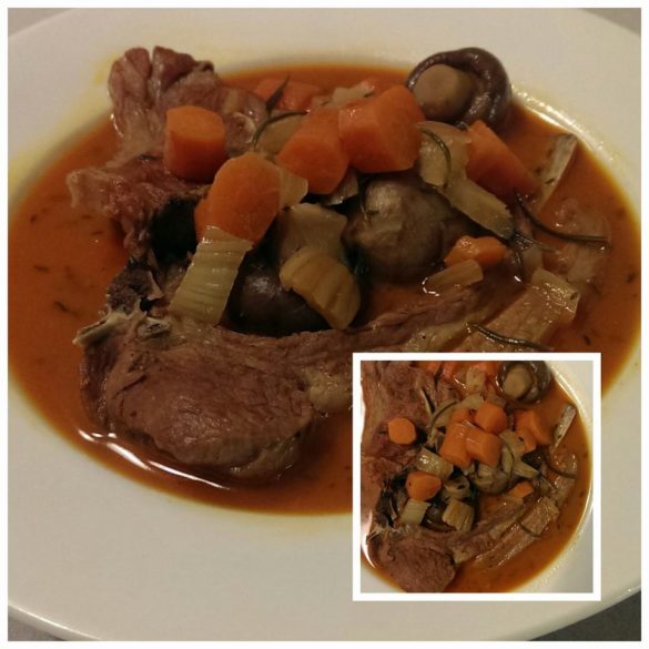 Nadat ik een lamsstoofschotel op het haunted castle festival in Lisse had gegeten, wilde ik dit zelf ook klaar gaan maken. Ik heb verschillende recepten bekeken en toen bedacht hoe ik het wilde klaarmaken. Sowieso wilde ik witte wijn gebruiken, door het zure in de wijn wordt het vlees mals. Ik dacht ook aan tijm, rozemarijn en wintergroenten. Dus voilà, mijn Franse lamsstoofschotel.