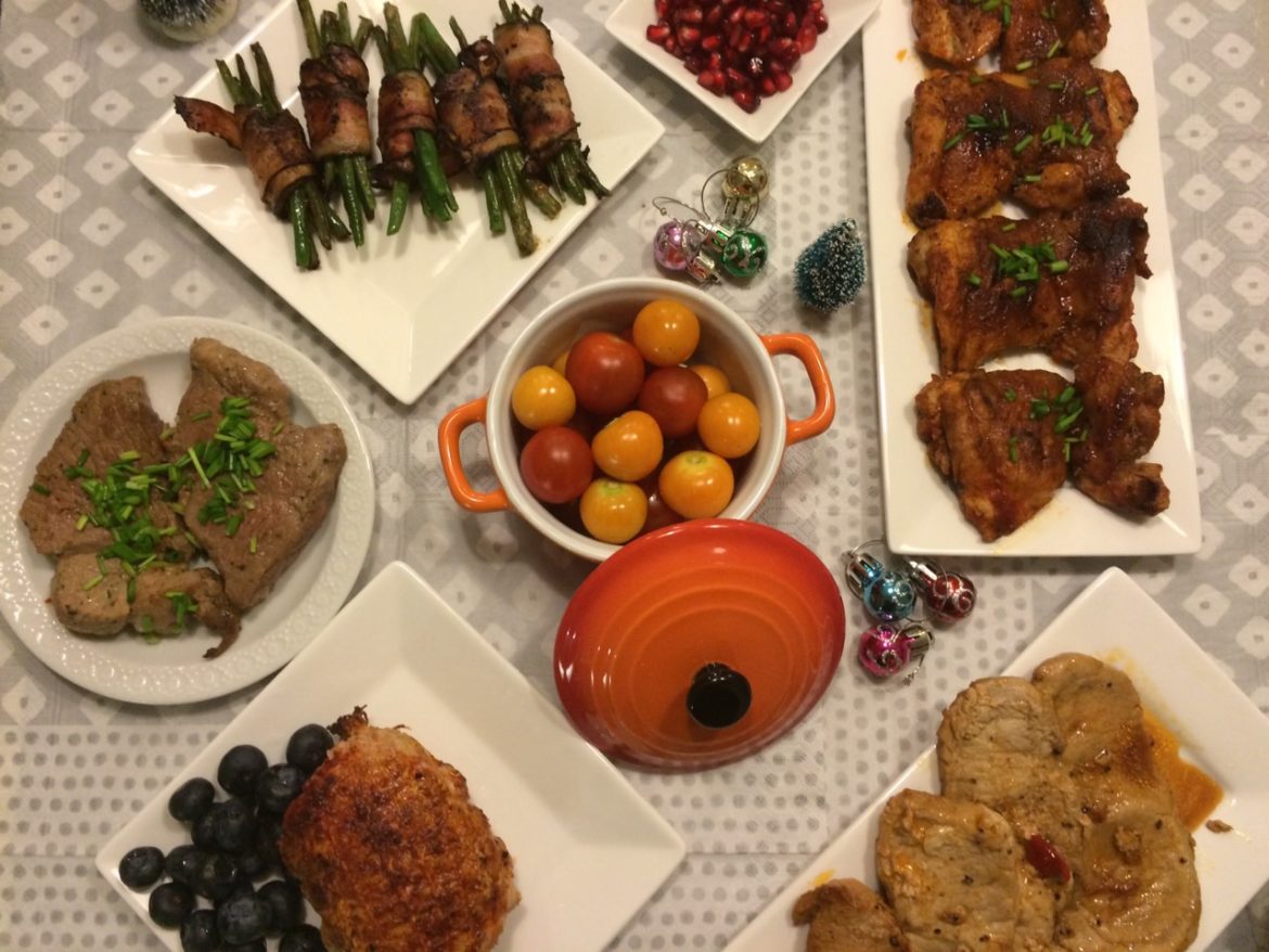 Mijn kerstspecial bestaat voornamelijk uit vlees met fris fruit. Het is verrassend lekker hoe goed de verschillende vleessoorten samen met het fruit smaken. Een goed alternatief voor het gourmetten. Het oogt ook nog eens vrolijk, al de mooie kleuren op het bord maken het een vrolijke maaltijd.