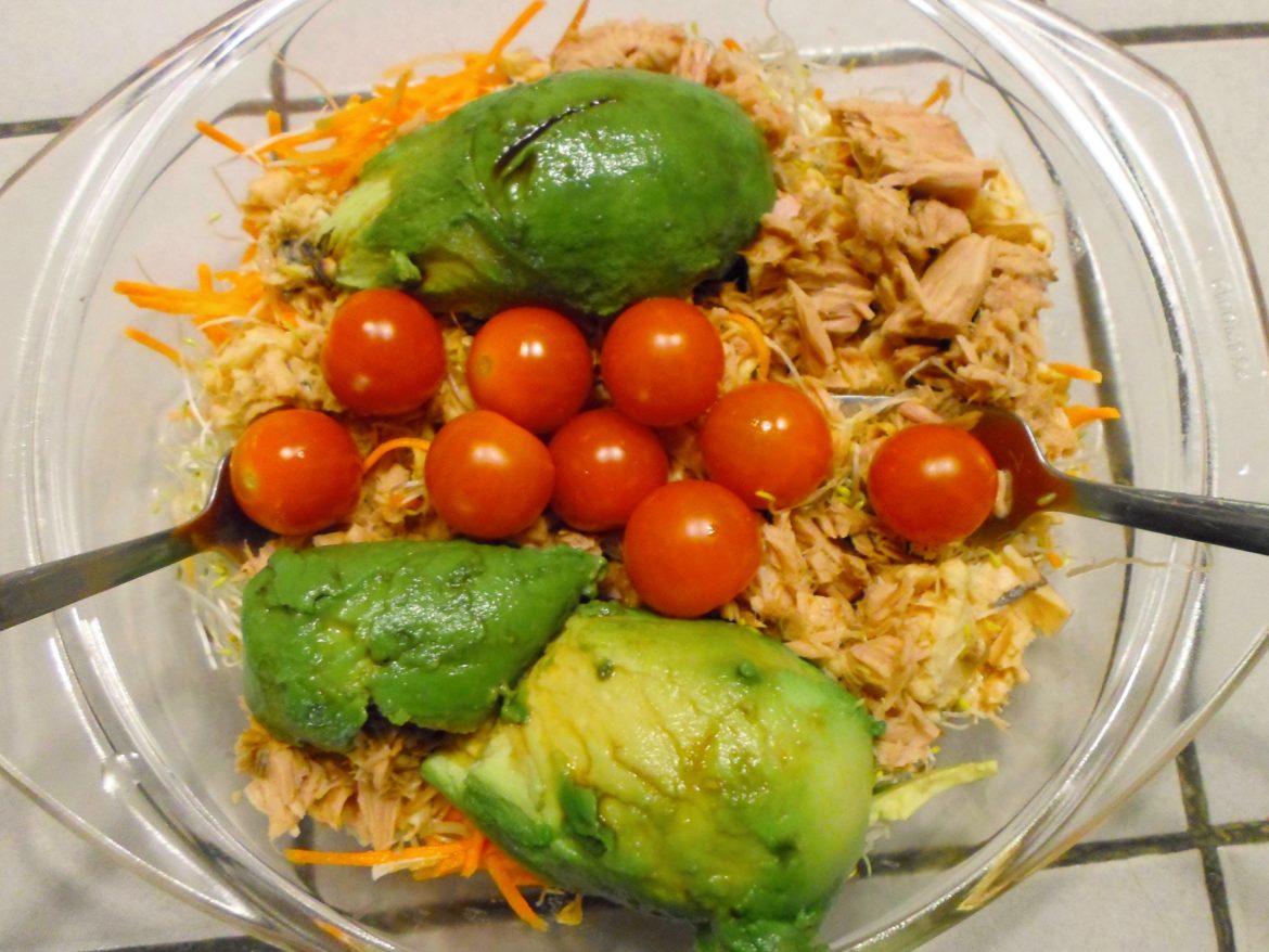 Maaltijdsalades zijn erg lekker, mits je natuurlijk lekkere ingrediënten combineert. Ik houd van goedgevulde maaltijdsalades volop verse en gezonde ingrediënten. Mijn nieuwste maaltijdsalade met tonijn, zalm, avocado, cherrytomaatjes, alfalfa, peen julienne (extra dun gesneden worteltjes), en een theelepel Kikkoman sojasaus gemengd met een heel klein beetje wasabi als dressing, is koolhydraatarm en onwijs lekker. En het mooie is dat de Kikkoman sojasaus (rode variant) ook koolhydraatarm is.