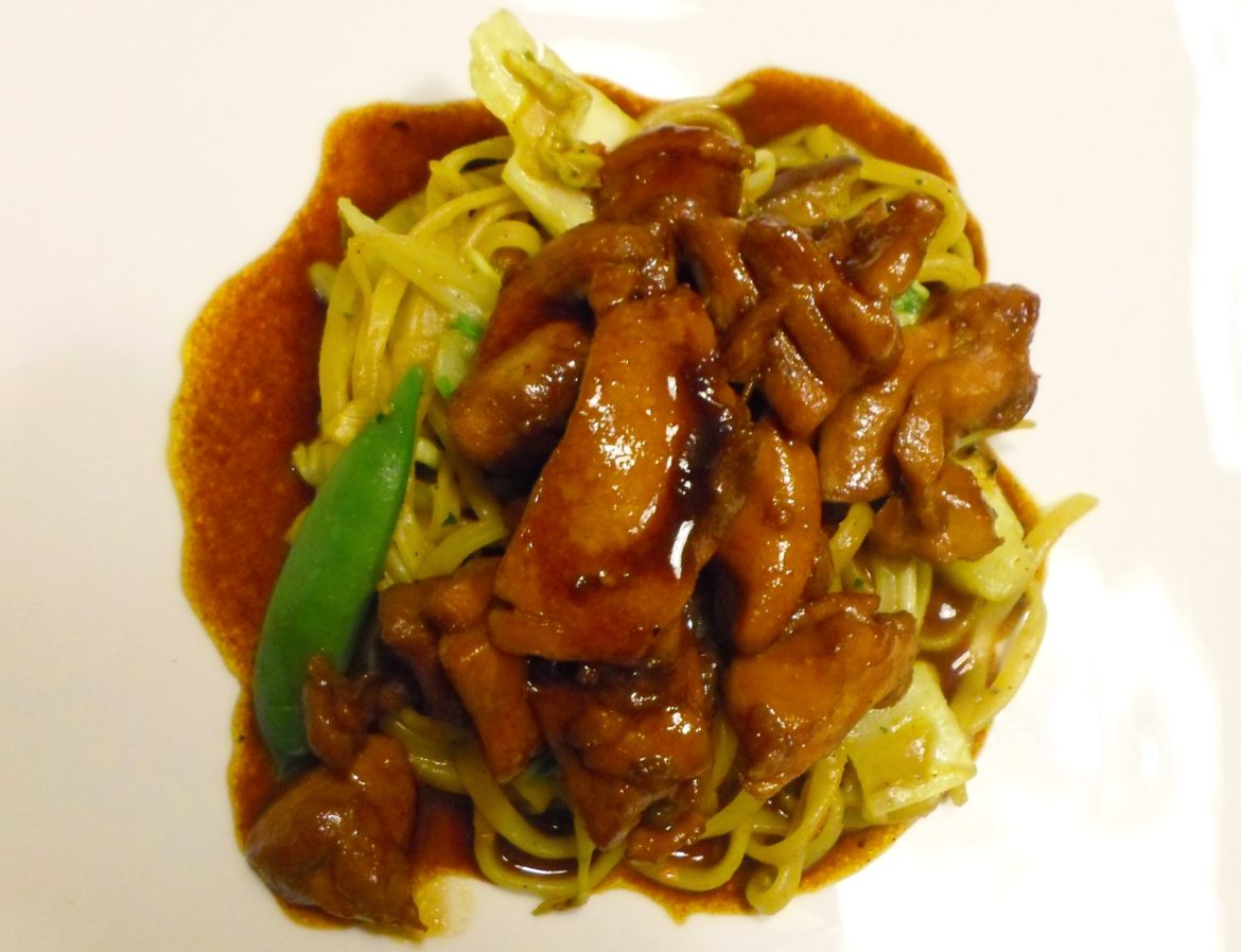 Variatietips: de hete kip gaat ook goed samen met noedels en wokgroenten, zoals op de foto bovenaan. Verder gaat de hete kip ook goed samen met rijst of (zoete) aardappelpuree tropische stamppot met zoete aardappelpuree.