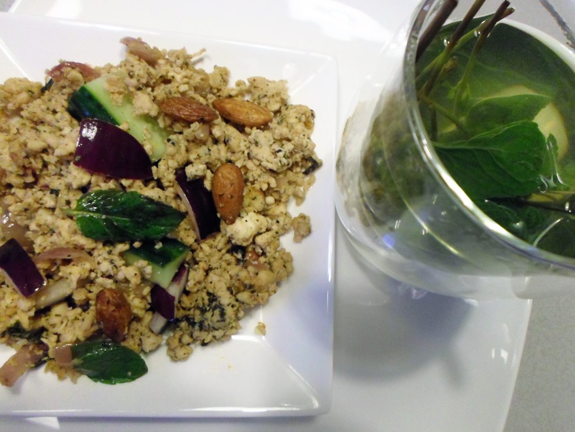 Deze salade is geïnspireerd op de Thaise keuken. Het is een pittige, frisse salade met o.a. pittig gekruid kipgehakt en muntblaadjes. Ik had een keer een Thaise salade genaamd Laab bij een restaurant in Den Haag besteld en deze viel goed in de smaak, dus ik besloot om deze zelf te gaan klaarmaken. En deze was goed gelukt en smaakt heerlijk!